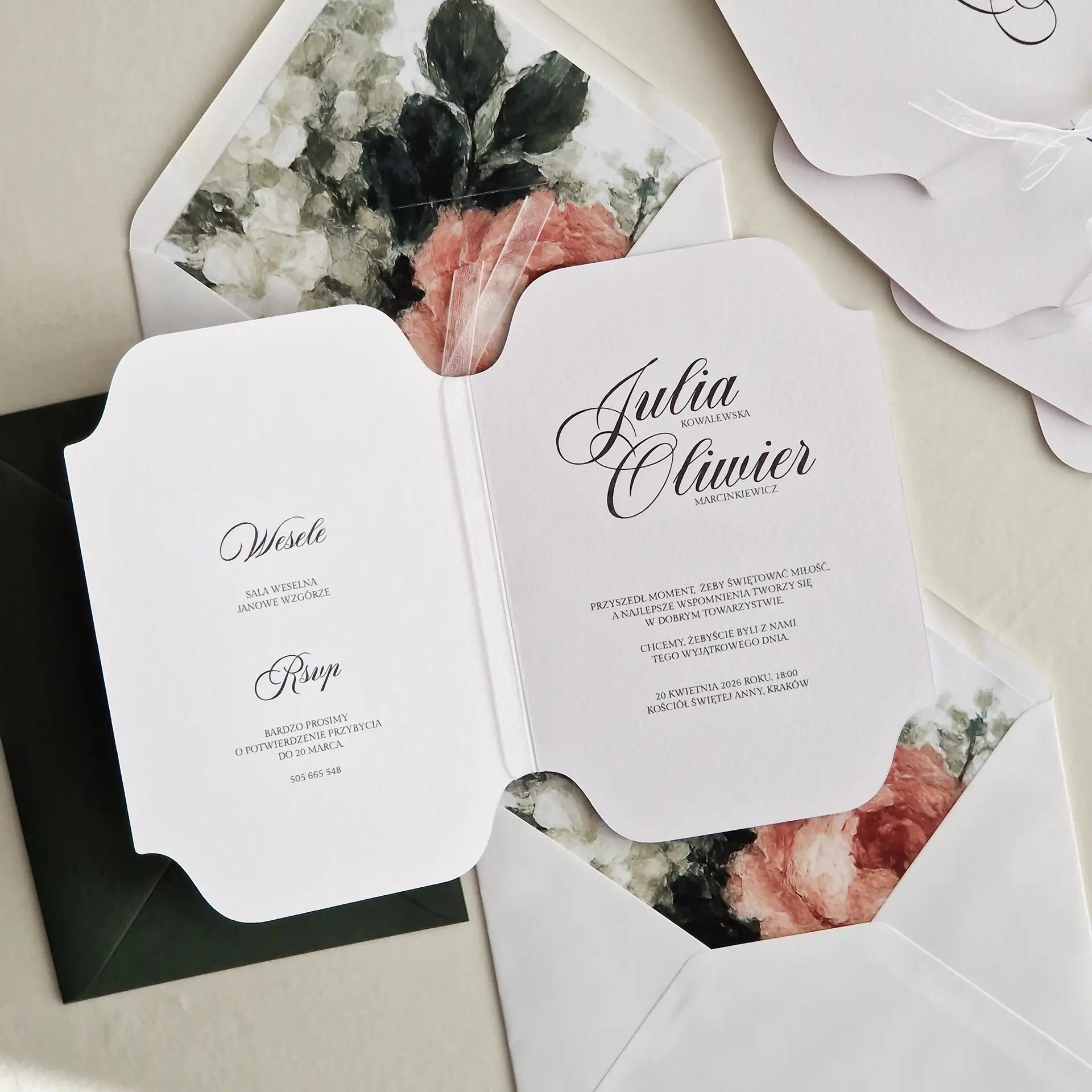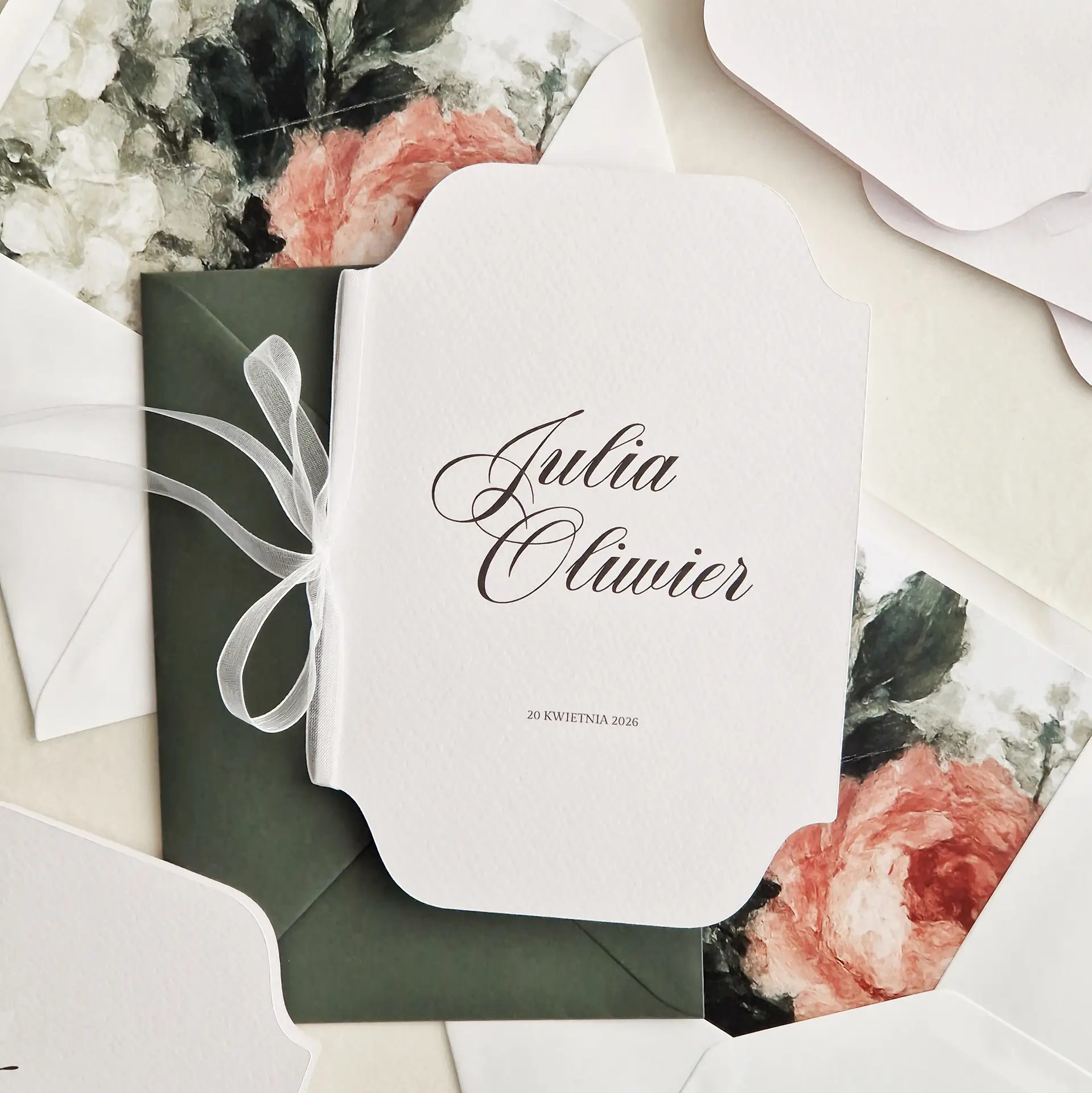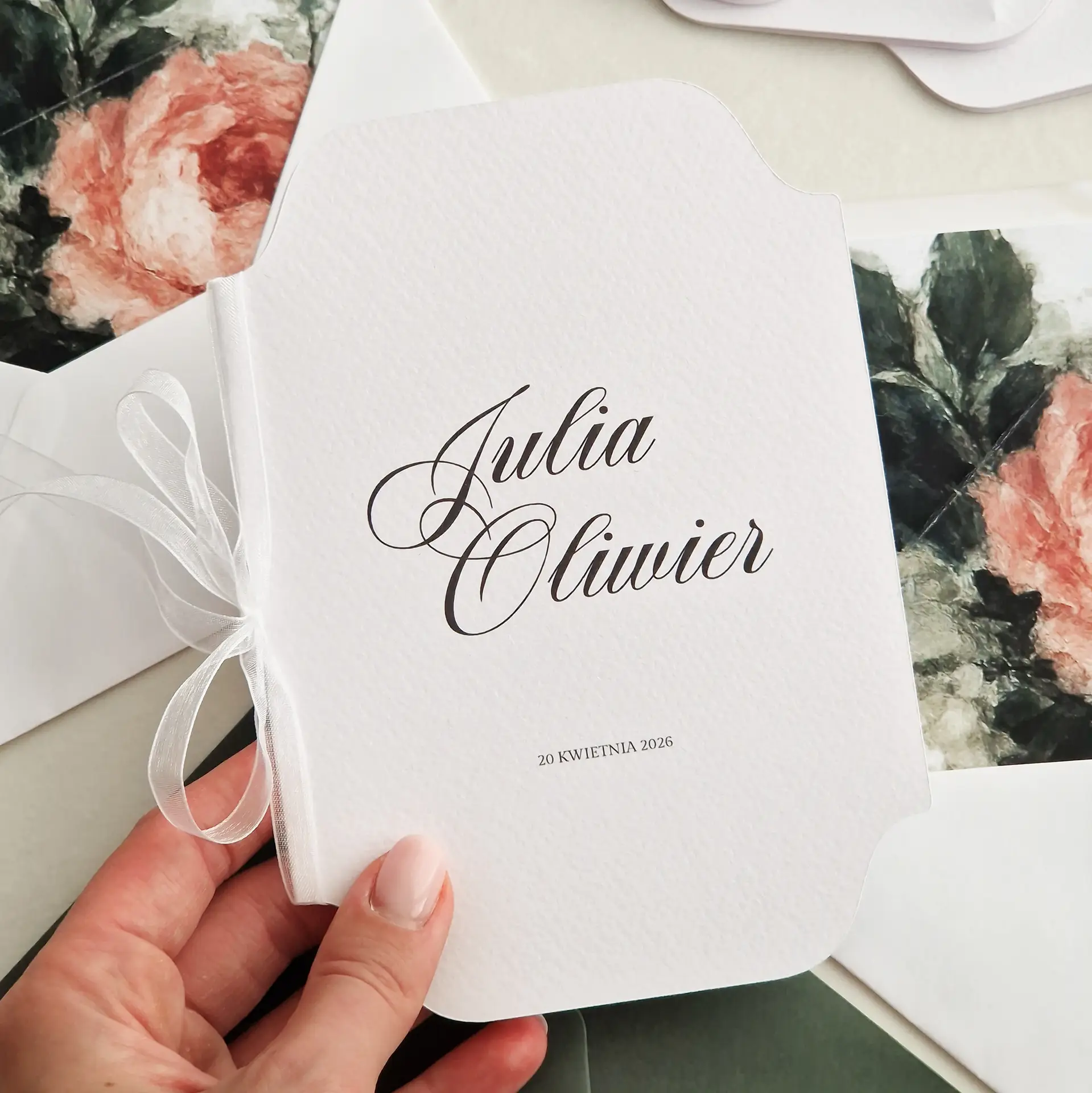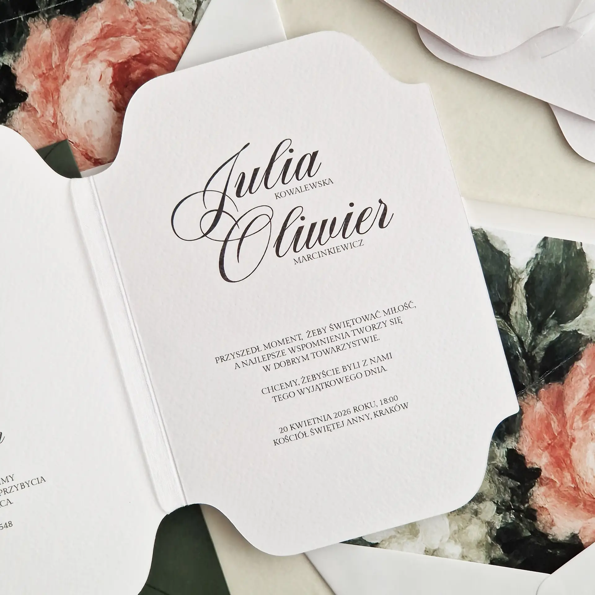 • Zaproszenie składane, o miękkiej, organicznej linii cięcia.