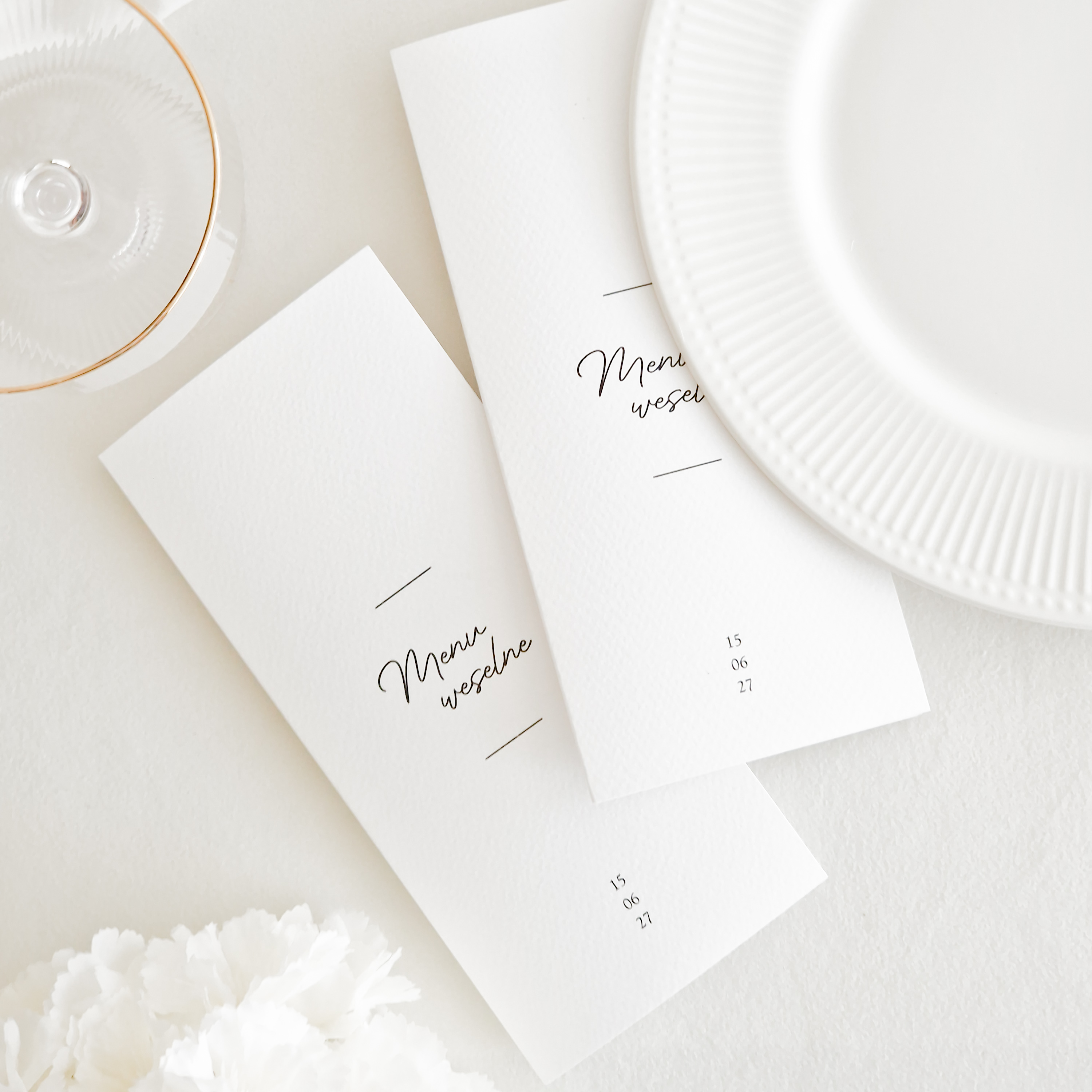 Menu weselne składane / Plan to klasyczna i praktyczna forma, która łączy elegancję z funkcjonalnością. Składane karty dają więcej miejsca na treść, dzięki czemu możesz szczegółowo przedstawić gościom dania, napoje, harmonogram przyjęcia lub dedykacje dla uczestników.